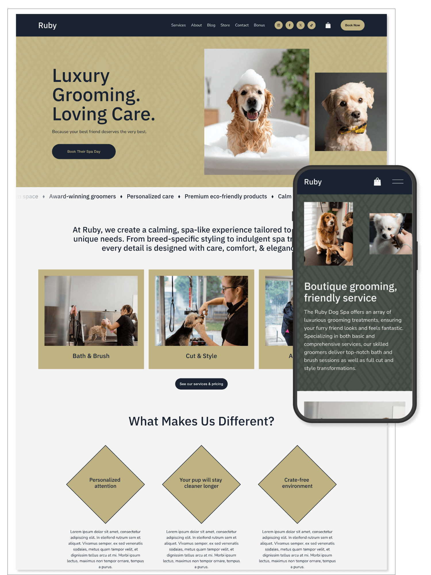 Designed to showcase your passion, professionalism, and care, Ruby makes it easy to welcome clients and highlight what makes your grooming salon truly special.